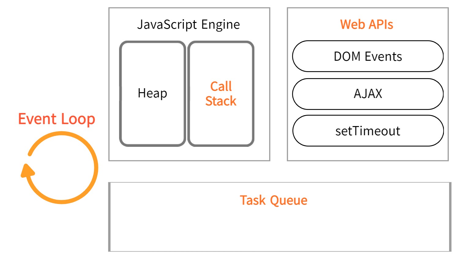 이벤트 루프를 이야기에는 자바스크립트 엔진 외에도 Web API와 태스크 큐의 개념도 함께 필요하다.