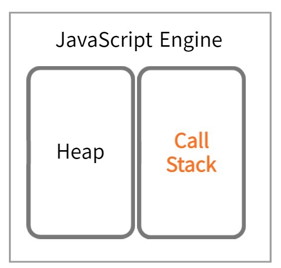 먼저 자바스크립트 엔진부터 간단하게 알아보자. 자바스크립트 엔진에는 메모리 힙(Memory Heap)과 호출 스택(Call stack)이 있다. 메모리 힙은 메모리 할당이 이루어지는 곳이고, 호출 스택은 실행 컨텍스트가 추가되고 제거되는 실행 컨텍스트 스택이다. 즉, 코드는 순서대로 이 호출 스택에 쌓여 실행이 되고, 실행된 후 호출 스택에서 사라진다.